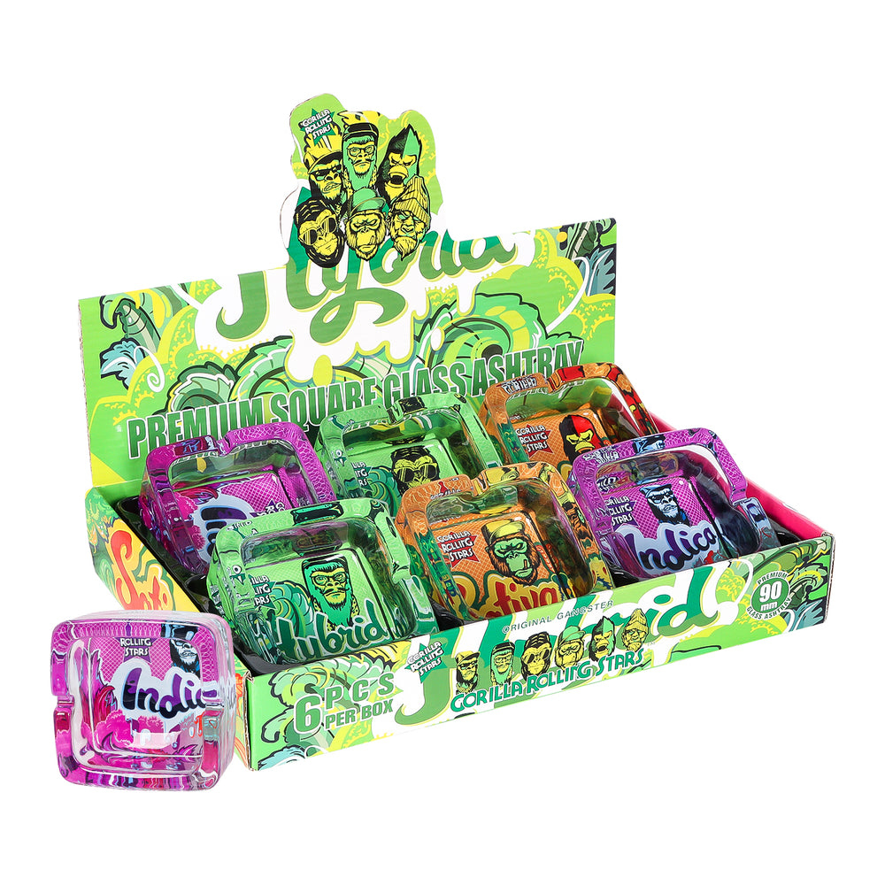 GORILLA ROLLING STARS Shatter Resistant Glass Ashtray, 93 x 42 mm Square Cigarette Ashtray with Cigarette Holder, 6 PCS / Box