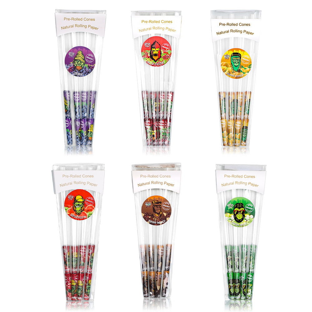 - [6flavors to chose]: We have 6 flavored pre-rolled cones to provide you for selecting. Include mango, grape, chocolate, green apple, watermelon, cherry. It is funny to have a flavored pre rolled rolling paper, good smell and good shape.